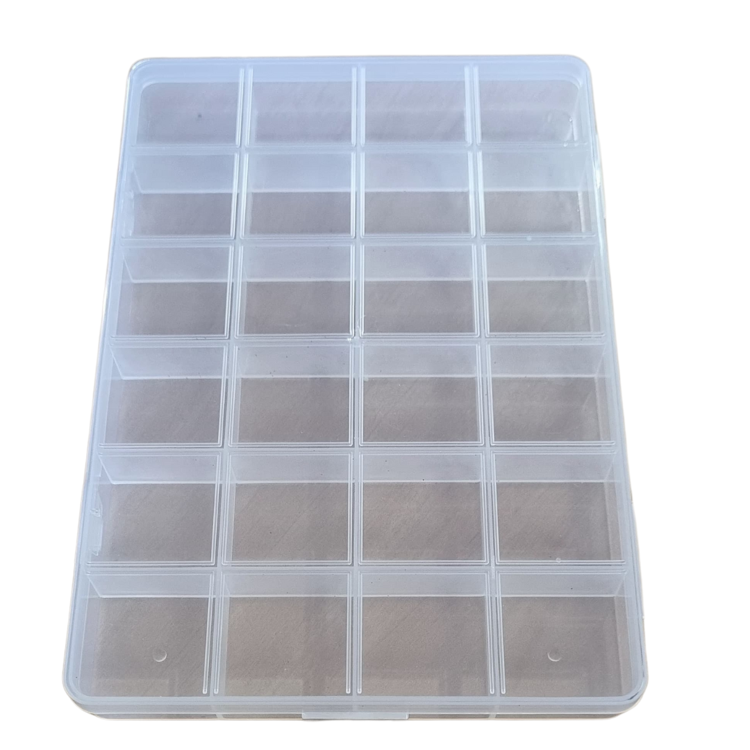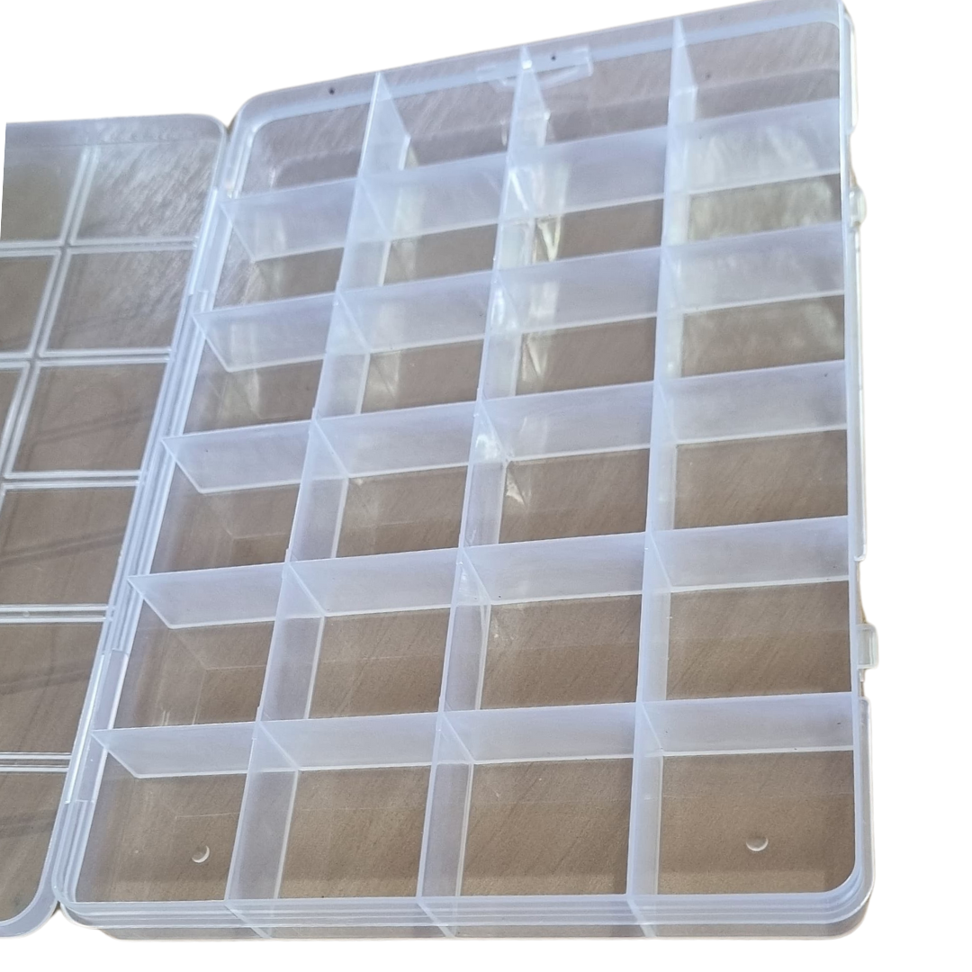 24 Compartimentos: Com 24 compartimentos individuais, esta caixa oferece ampla capacidade de armazenamento para uma variedade de glitters, strass, adesivos e outros acessórios de unhas, mantendo-os separados e organizados.