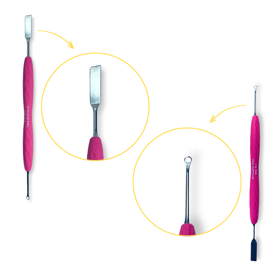 A Espátula de Manicure Gummy Staleks Pro Uniq foi desenvolvida para oferecer conforto, precisão e resistência durante o trabalho profissional. Produzida em aço inoxidável de qualidade cirúrgica, é altamente durável, resistente à corrosão e pode ser esterilizada em autoclave sem perder suas propriedades.