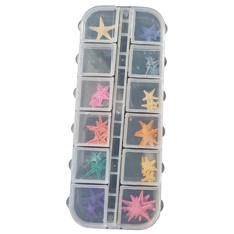Deixe suas unhas brilharem como estrelas com o Estojo 12 Cápsulas de Decoração Estrela do Mar em cores variadas!