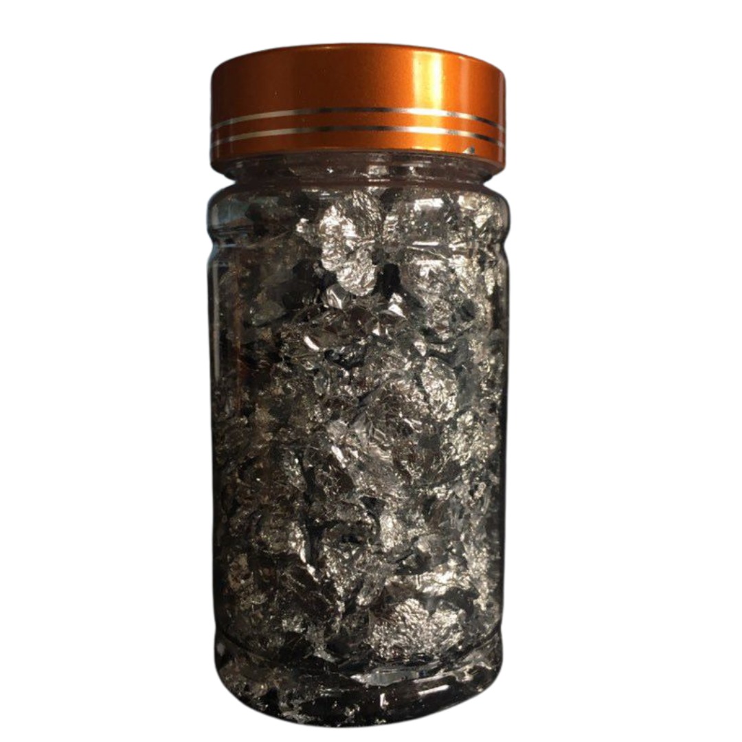 Coleta do Produto: Com o auxílio de uma pinça de precisão ou de um pincel de silicone, retire pequenos pedaços da folha metálica do pote. Evite manusear o produto diretamente com os dedos, pois a oleosidade natural da pele ou a umidade podem fazer com que a folha grude nas mãos, rasgue incorretamente ou perca o brilho.
