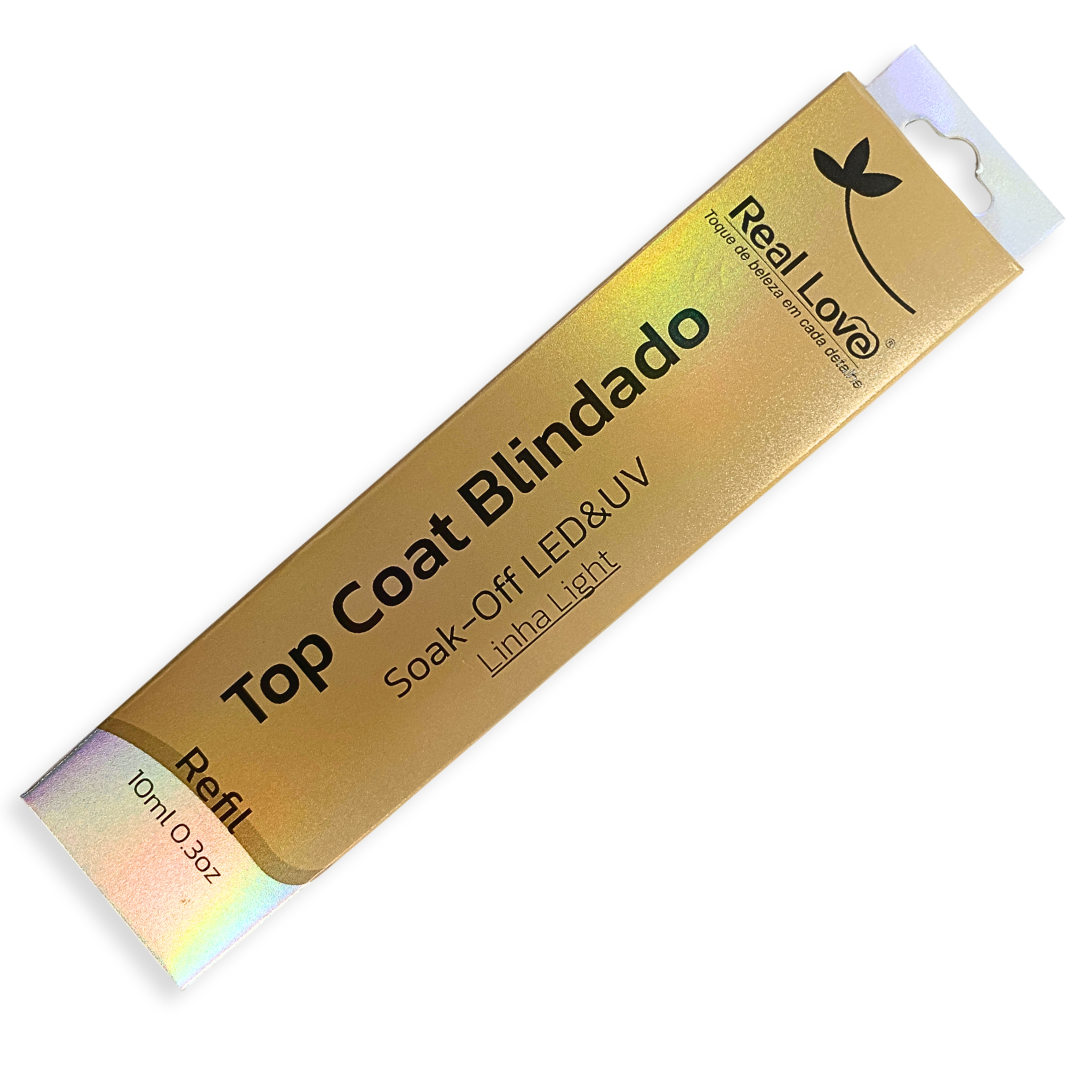 Após a finalização da modelagem ou esmaltação em gel, aplique uma camada fina do Top Coat Blindado Real Love.